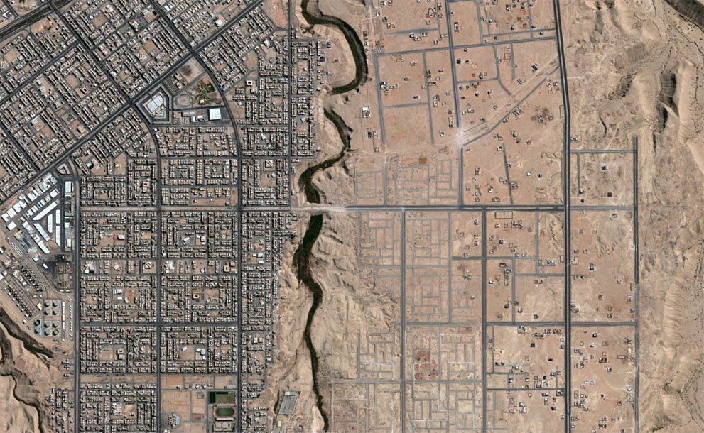 | A growing community near a well-off city - A Saudi neighborhood, about 16km southwest of Riyadh (© Google, GeoEye) |